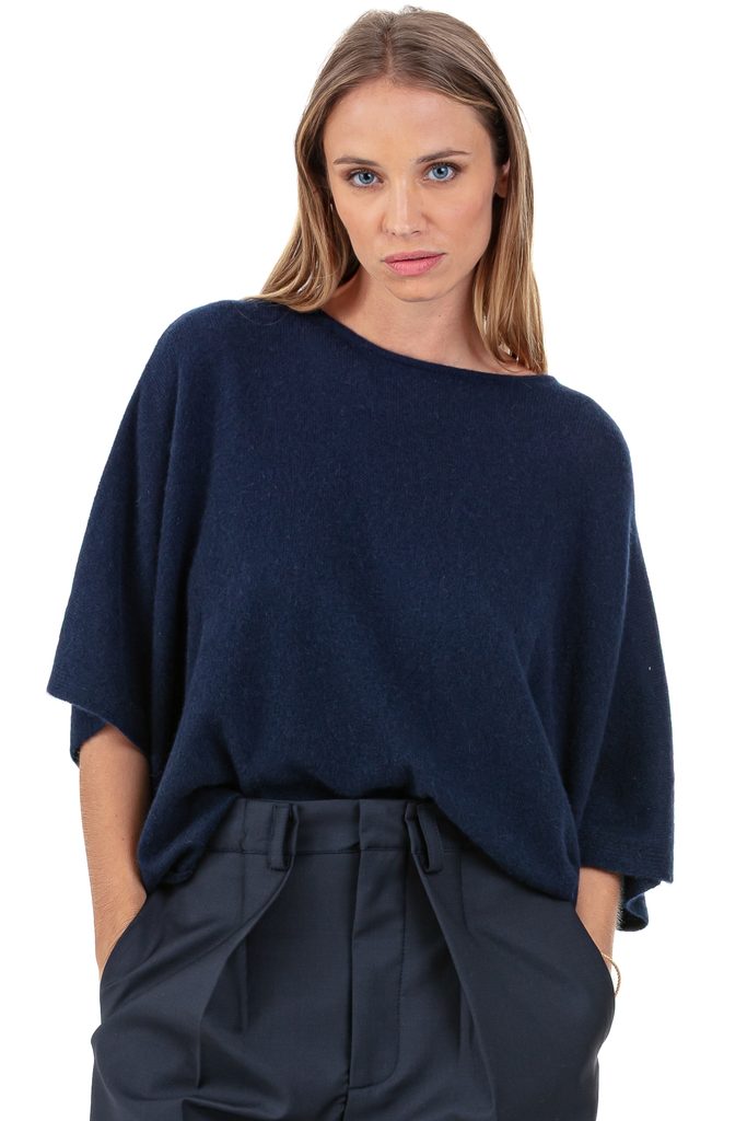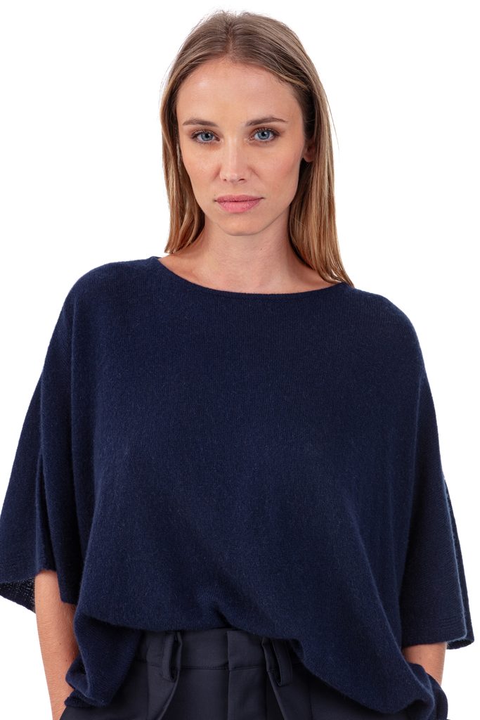 Airy and modern, the PYTHAGORE women’s poncho offers a fluid, elegant silhouette. Knitted in 100% 2-ply loose-gauge cashmere, it enchants with its supple, lightweight knit. With its round neck, wide cut, and short sleeves, it reinvents the traditional poncho in a chic, contemporary version.