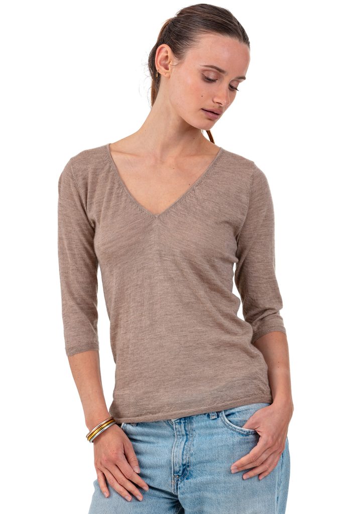 Soft and refined, the PALMA women’s jumper in cashmere down delights with its exceptional lightness and versatility. Knitted in 100% 2-ply cashmere down, it offers a delicate, fluid knit, perfect for wearing directly against the skin. Its originality lies in its reversible neckline: a round neck on one side and a V-neck on the other, allowing you to vary your style at will. Three-quarter sleeves and a straight cut give it a modern and feminine appeal.