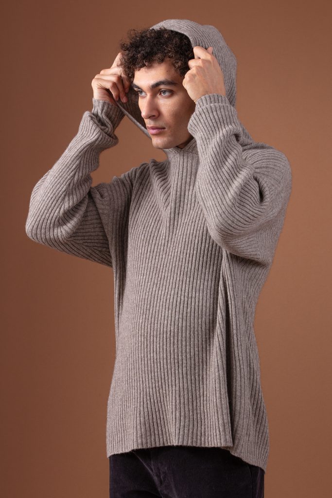 Warm and relaxed, the RAFAH hoodie features full-body ribbing and a sleek silhouette. Knitted in 2-ply 100% yak, it’s light, soft and naturally insulating.